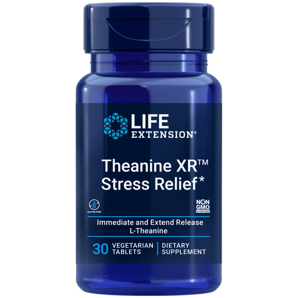Theanine XR™ Stress Relief delivers 400 mg of extended-release L-theanine to promote calm focus, reduce stress, and support balanced mood—all day long without drowsiness.
