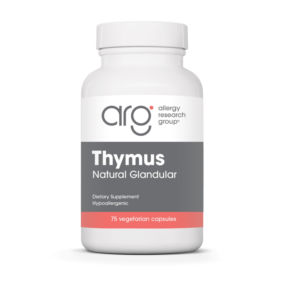 Allergy Research Group® Thymus Tissue Supplement is formulated to provide high-quality thymus glandular material to support overall wellness. Sourced from government-inspected, range-fed animals raised in New Zealand and Australia—countries known for some of the world’s strictest animal husbandry standards—this natural glandular supplement is produced with exceptional care and quality control.
