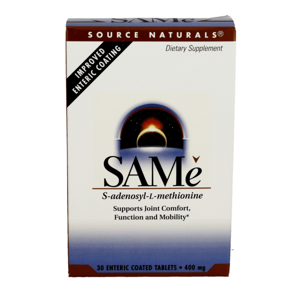 Source Naturals® SAMe is a clinically studied, bioavailable form of S-Adenosyl-L-Methionine designed to support joint comfort, function, and mobility. These enteric-coated tablets are blister-packed to protect SAMe from breakdown and ensure maximum absorption.
